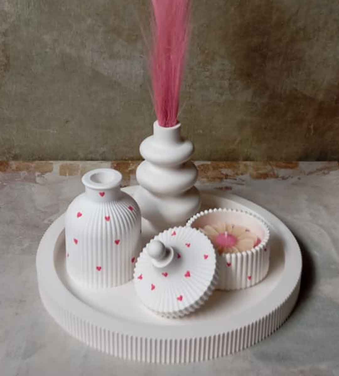STRIPPED POT WITH CANDLE